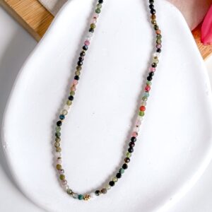 Naszyjnik z perłami i bryłami turmalinu kolorowego