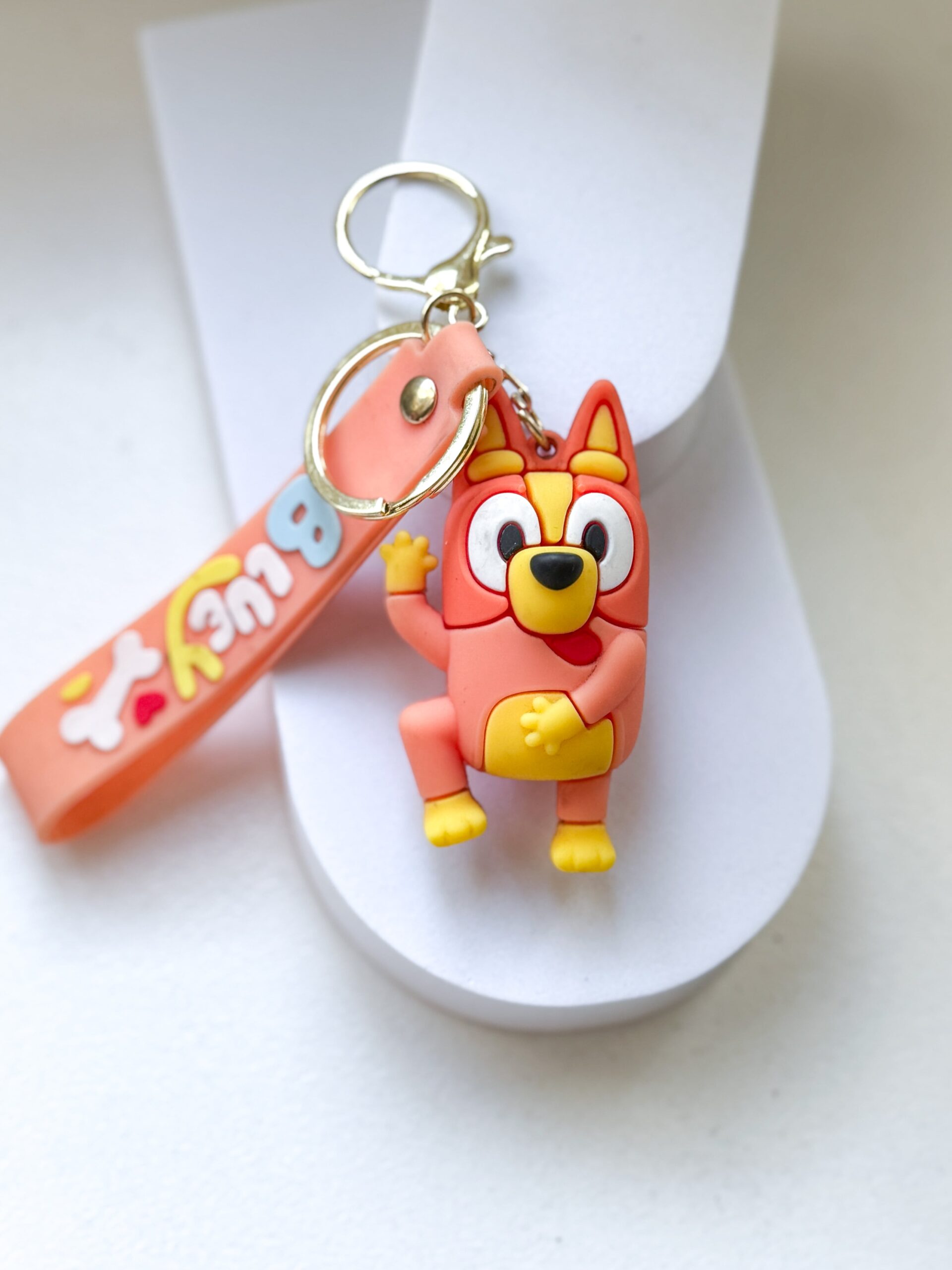 Brelok silikonowy Bluey Bingo. W zestawie pasek silikonowy i złota zawieszka.