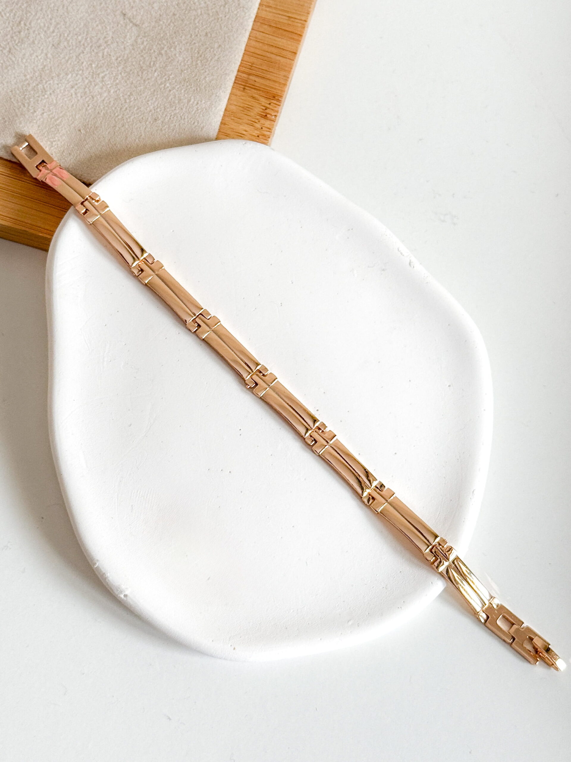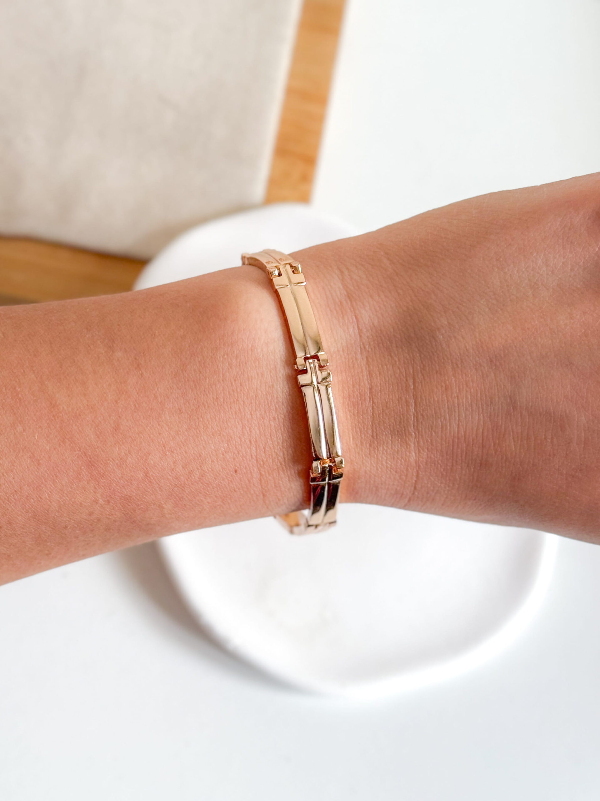 Pozłacana bransoletka ze stali chirurgicznej gładka, w kolorze złocenia 18K. Zapięcie zatrzask.