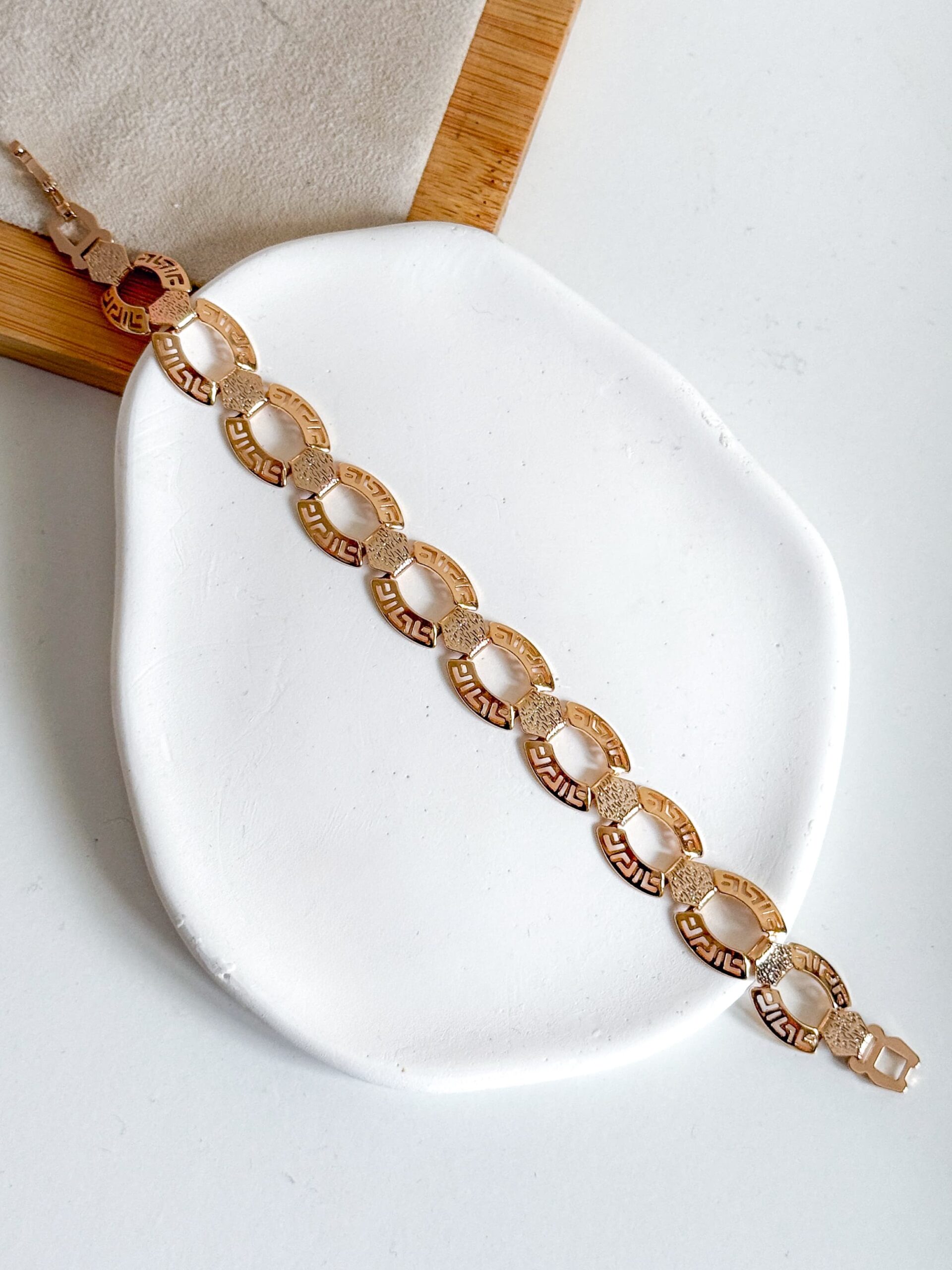 Pozłacana bransoletka ze stali chirurgicznej grecki wzór, w kolorze złocenia 18K. Zapięcie zatrzask.