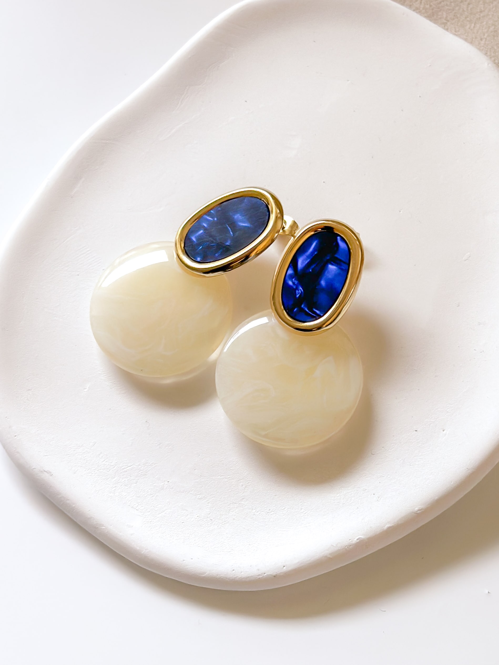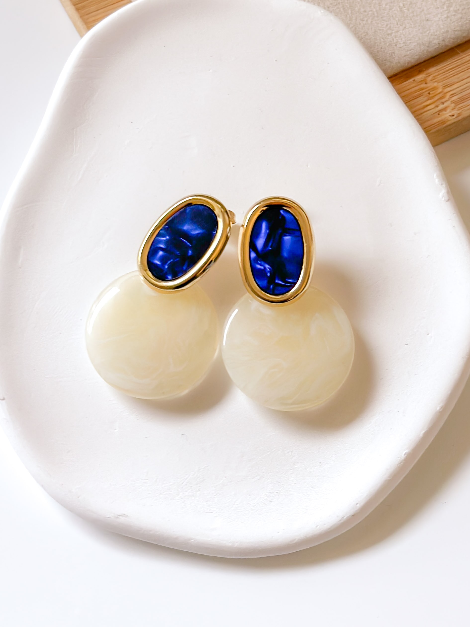 Kolczyki chabrowe kryształy beżowe blaszki