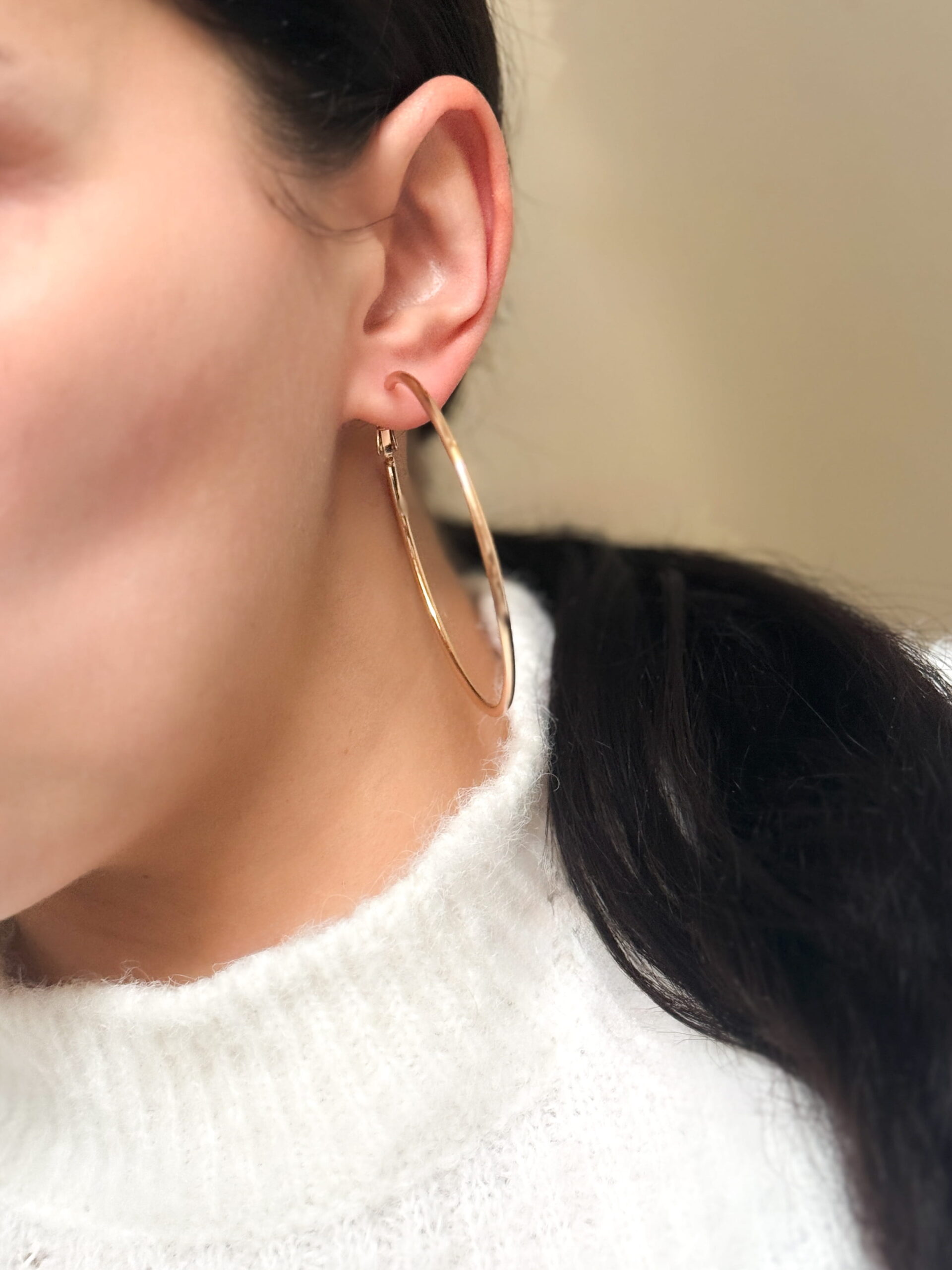Pozłacane kolczyki koła klasyczne duże 6cm, automatyczne zapięcie na zatrzask