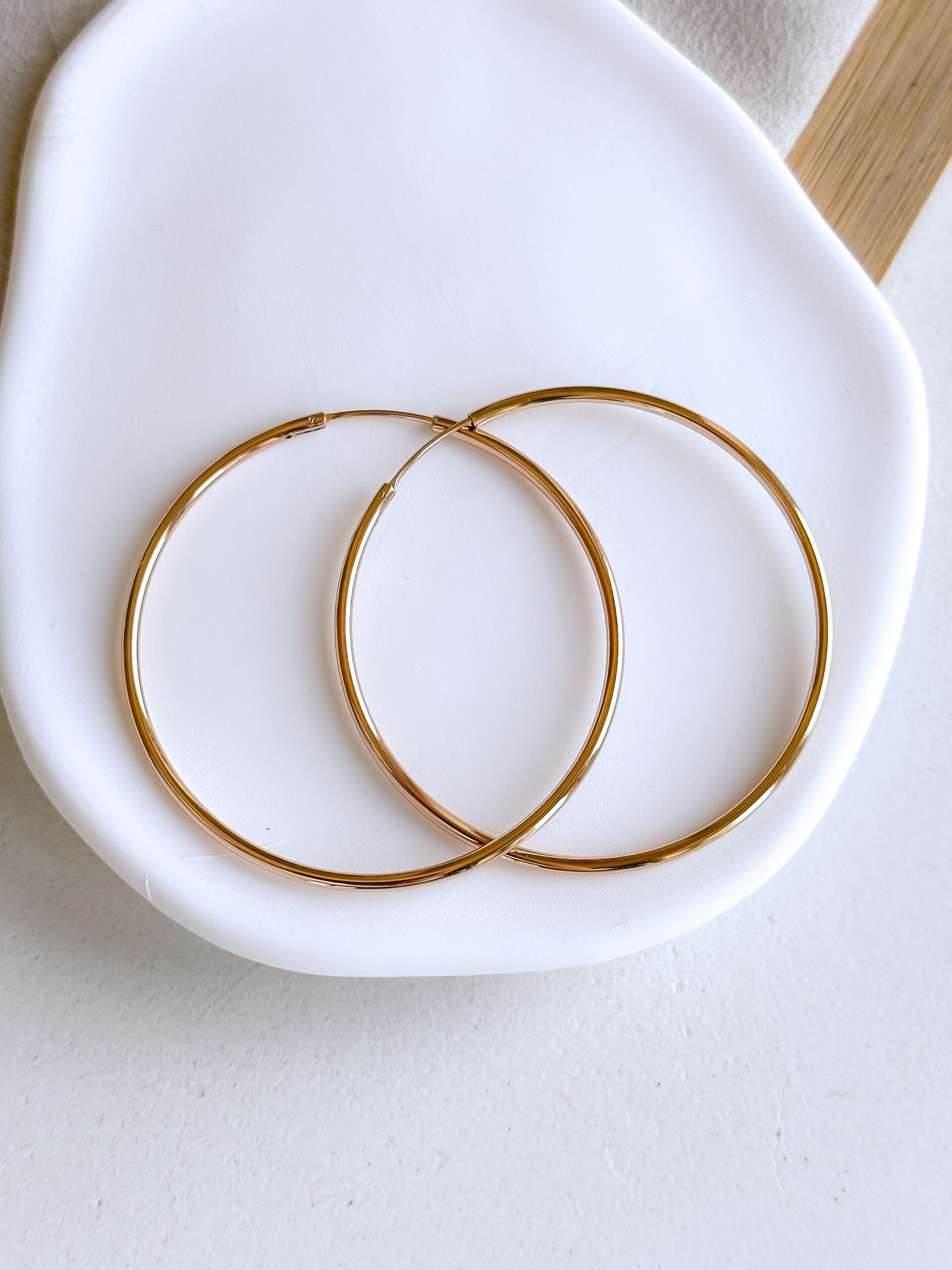 Pozłacane kolczyki ze stali chirurgicznej, koła klasyczne, duże, gładkie w kolorze złotym. Zapięcie wtykane.