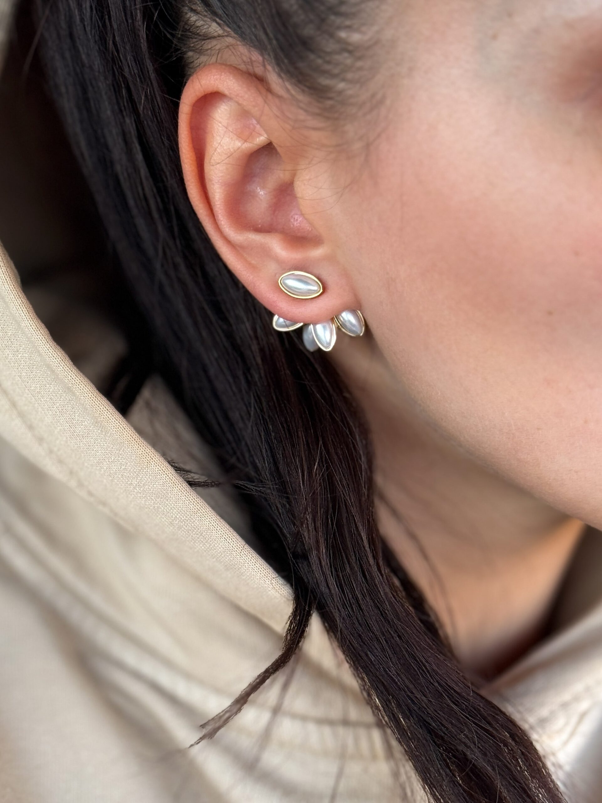 Kolczyki pawi ogon z pereł, zatykane od tyłu. Zapięcia sztyfty- zatyczka perły.