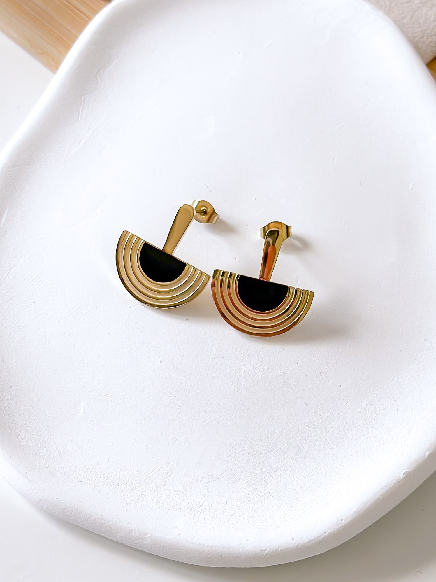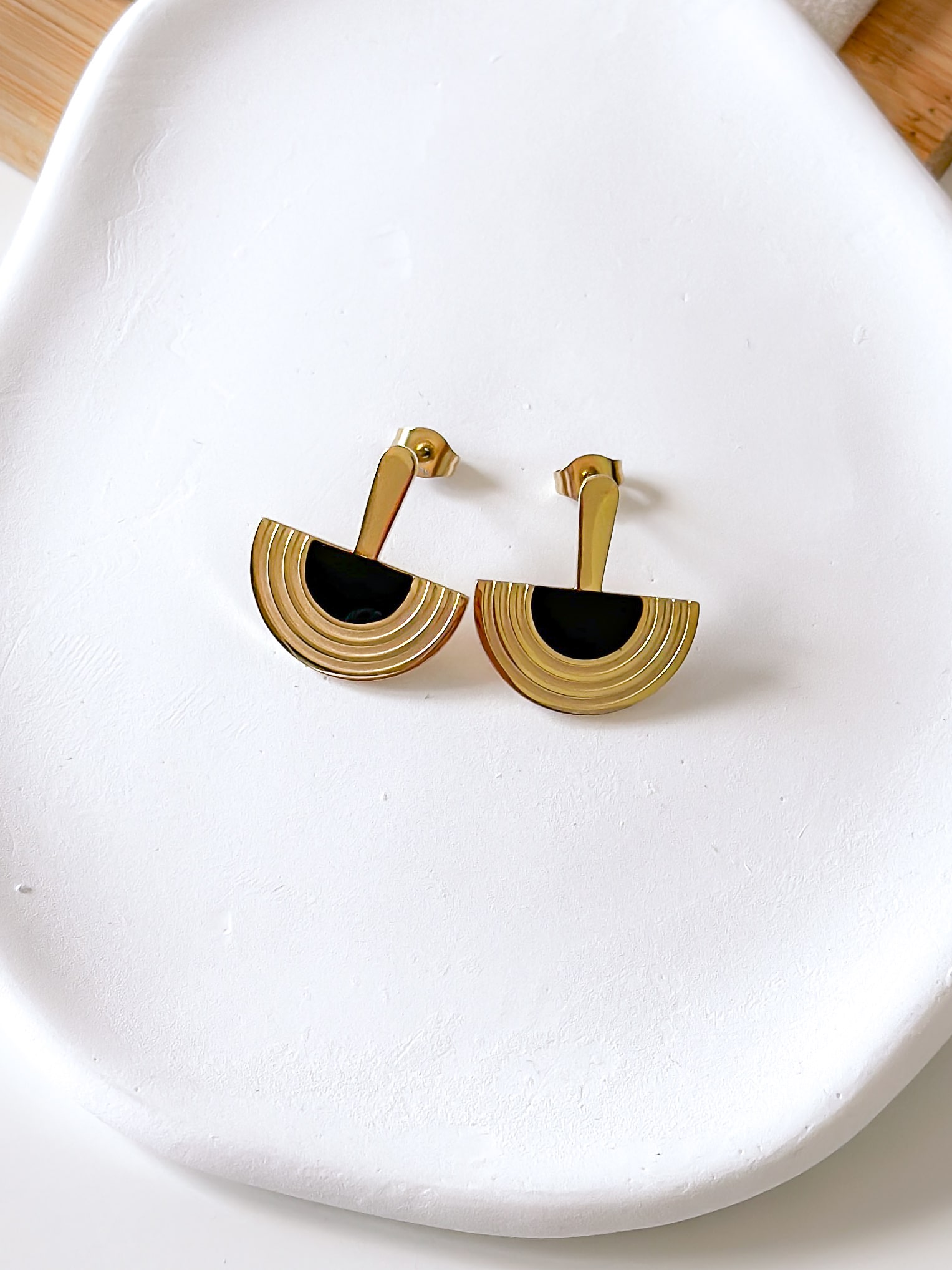 Kolczyki wachlarze czarne emaliowane. Zapięcie na wkrętki, sztyft.
