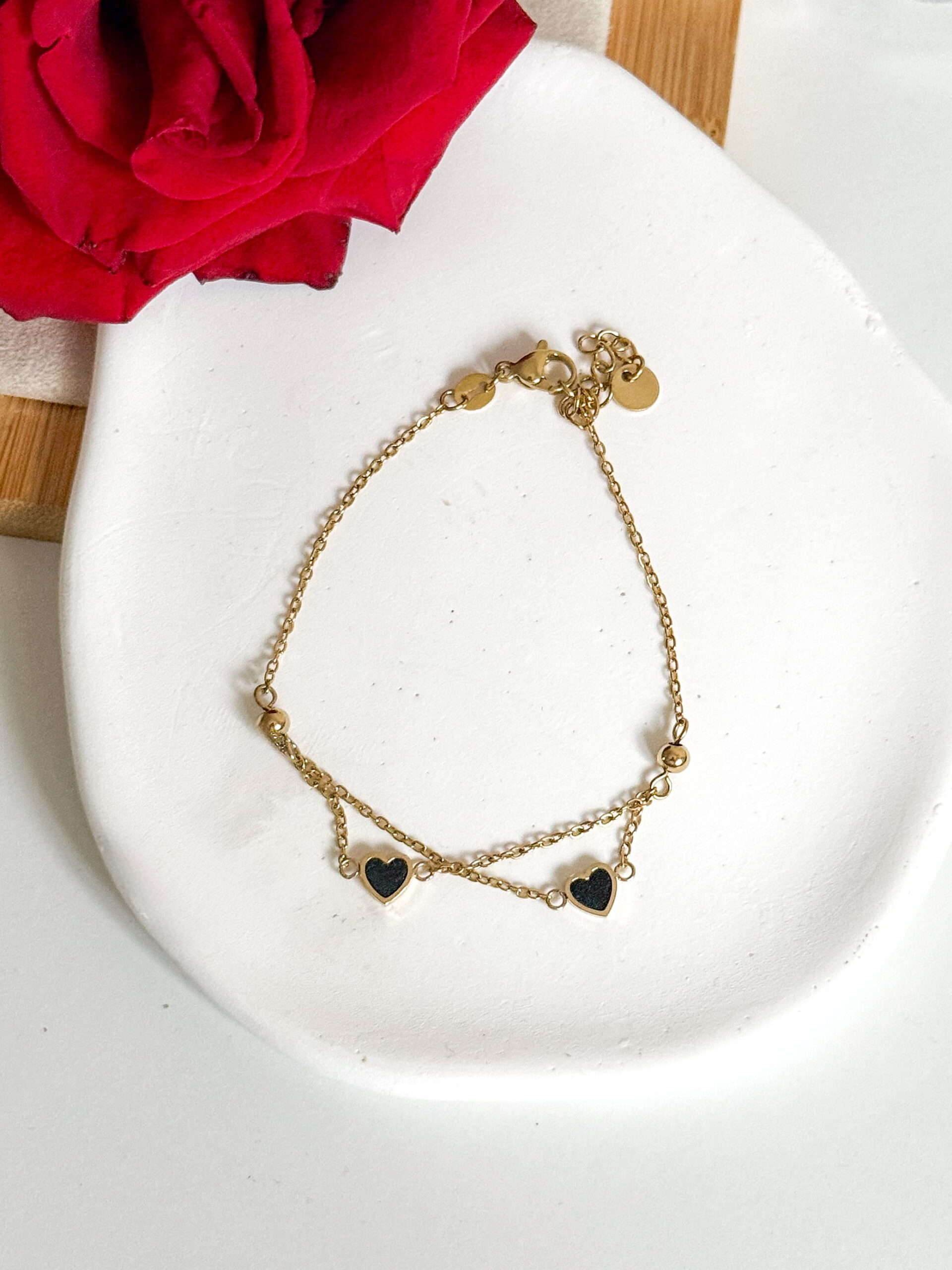 Bransoletka celebrytka dwa serca czarne. Zapięcie karabińczyk.