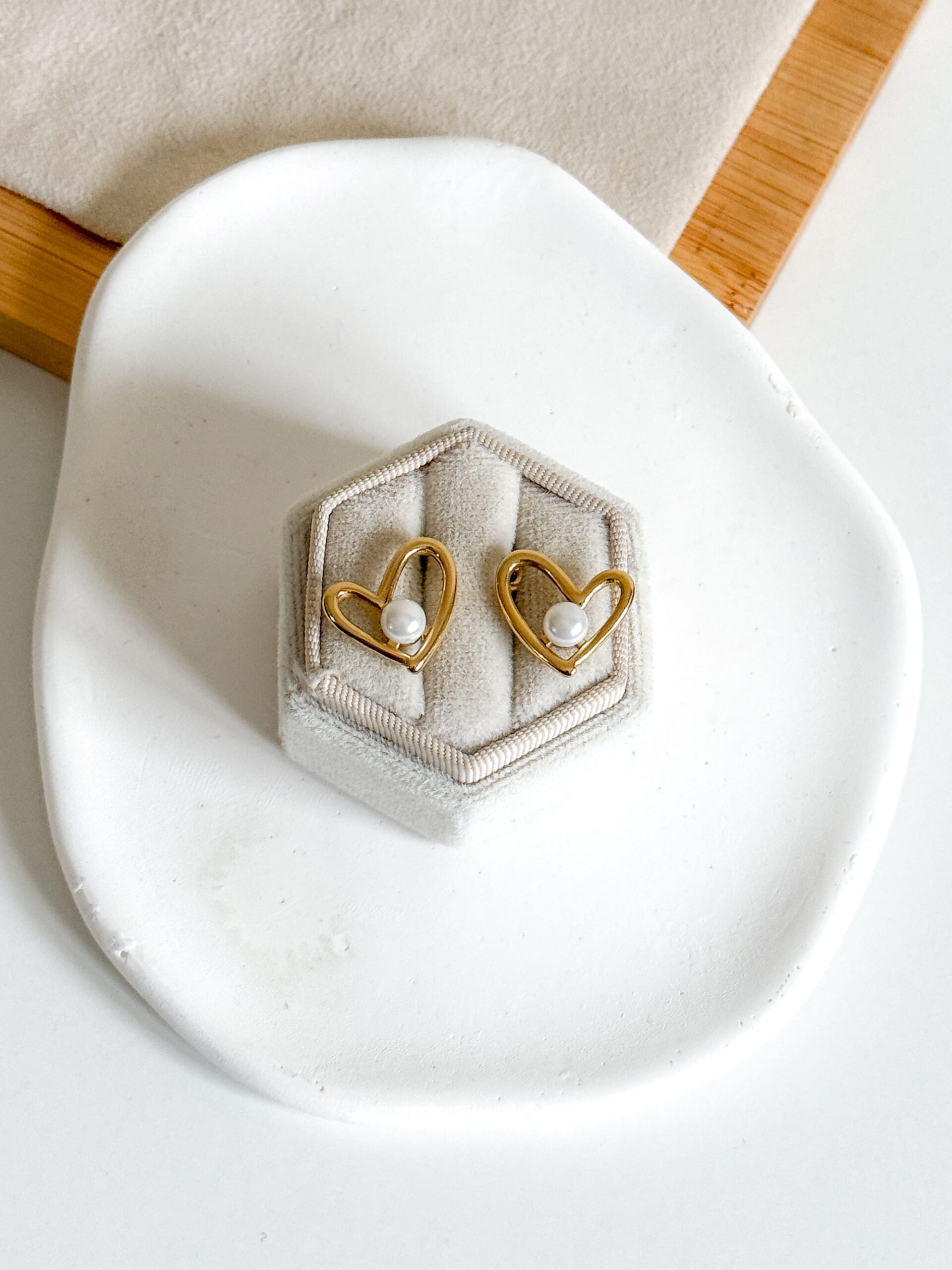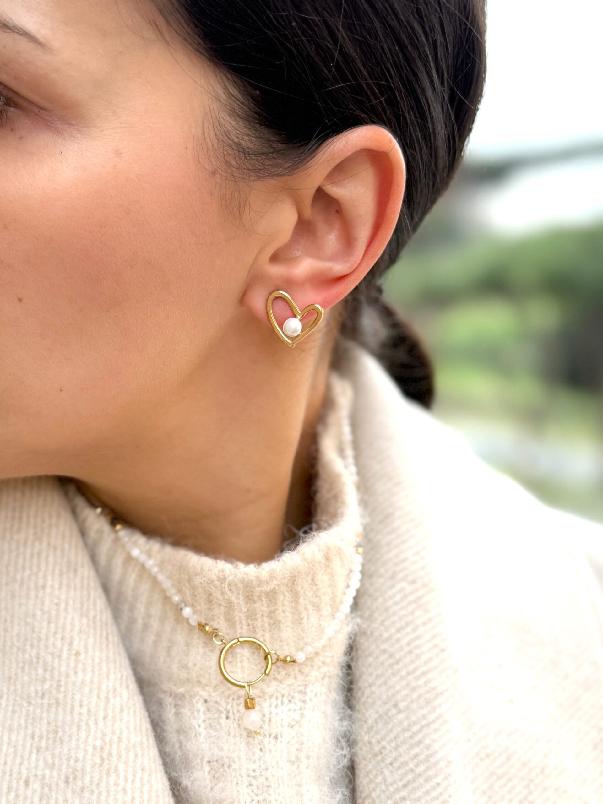 Kolczyki obwódki serca z perłą. Zapięcia sztyfty.