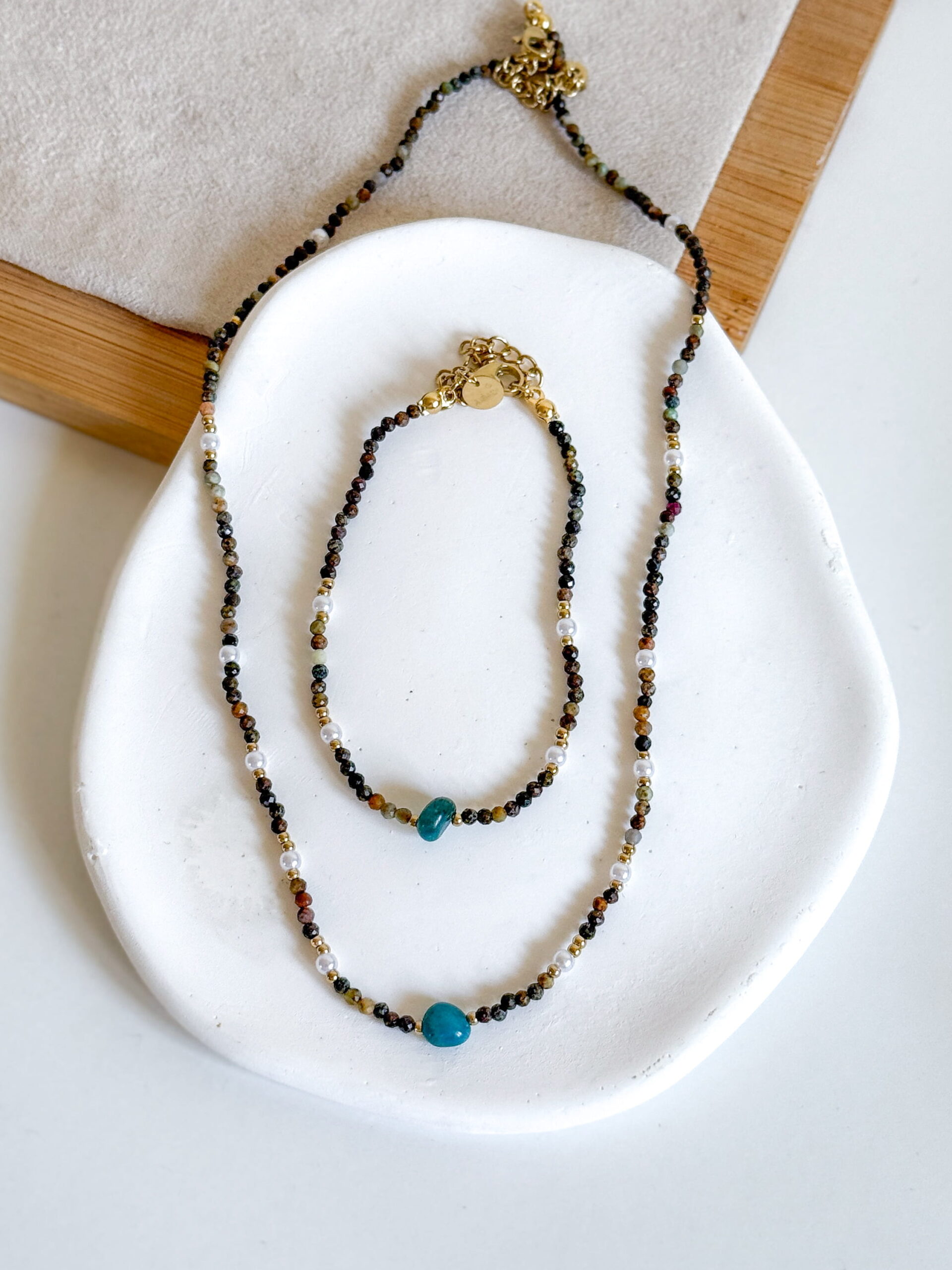 Komplet bransoletka i naszyjnik Jaspis coffee