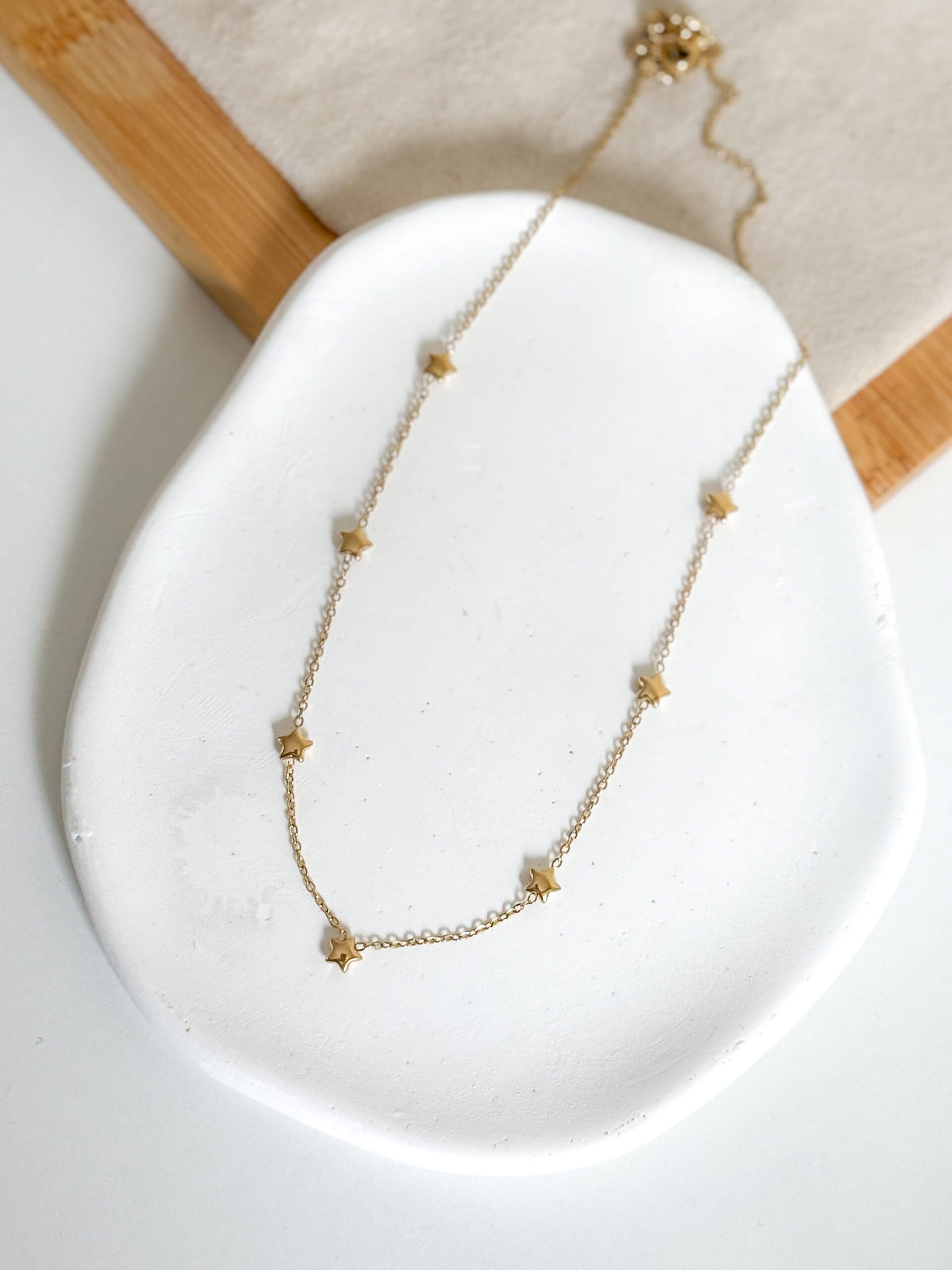 Naszyjnik cienka celebrytka z drobnymi zawieszkami gwiazdkami.