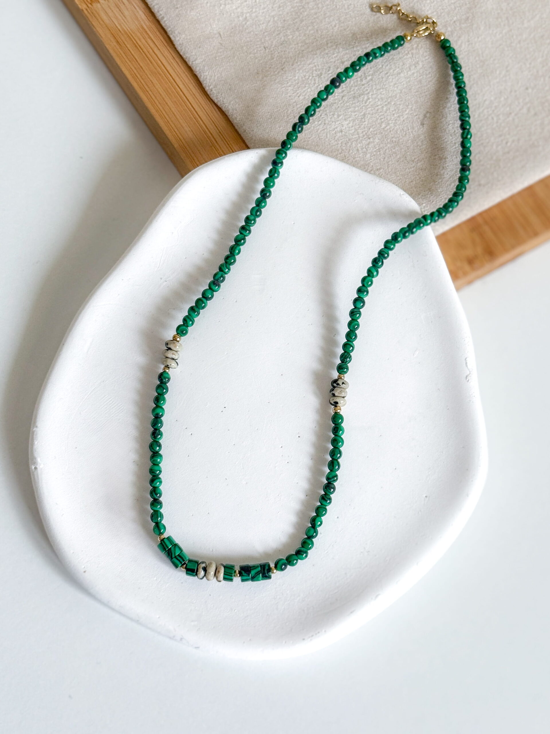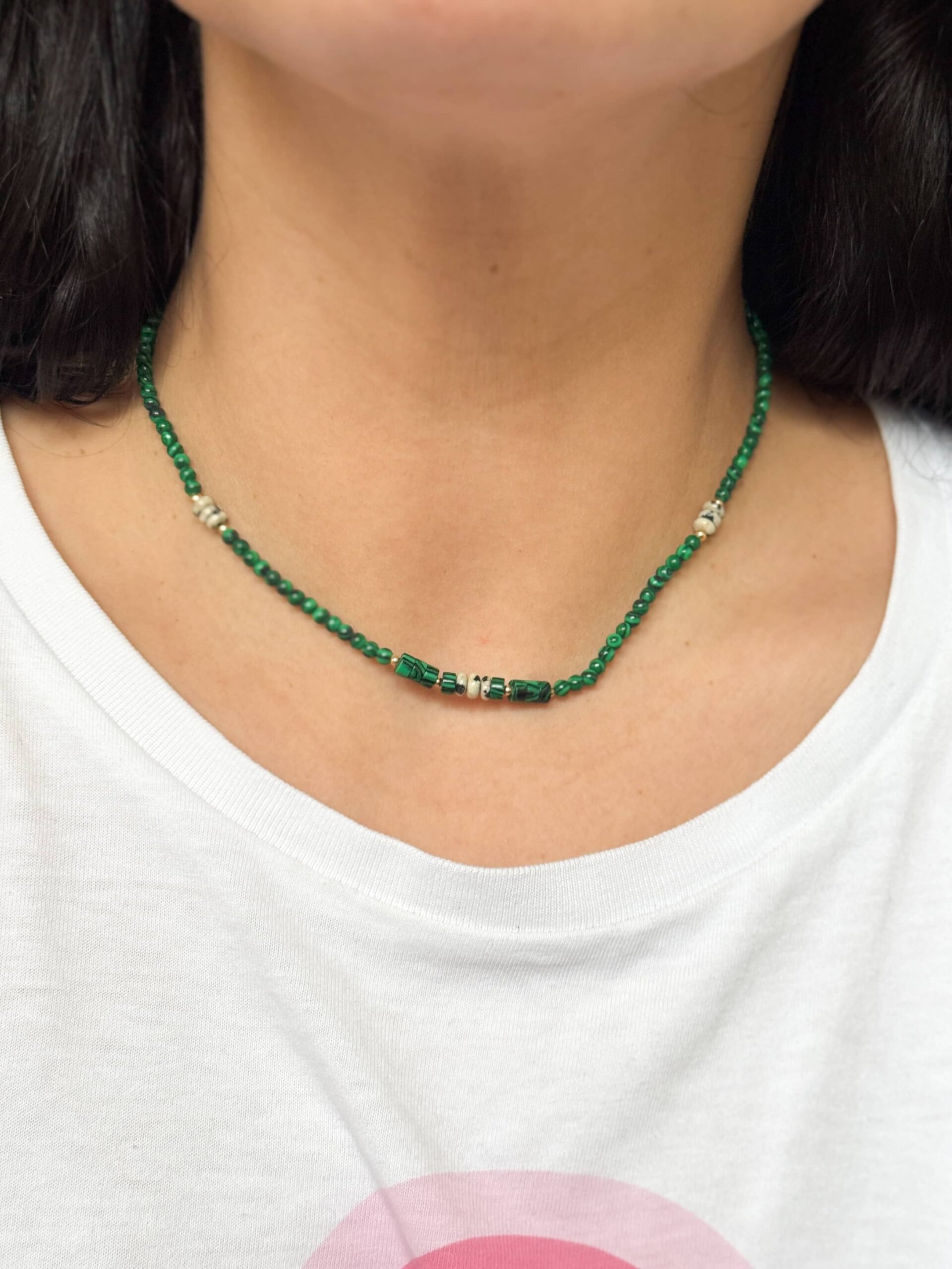 Naszyjnik choker ręcznie wykonany malachit jaspis dalmatyński