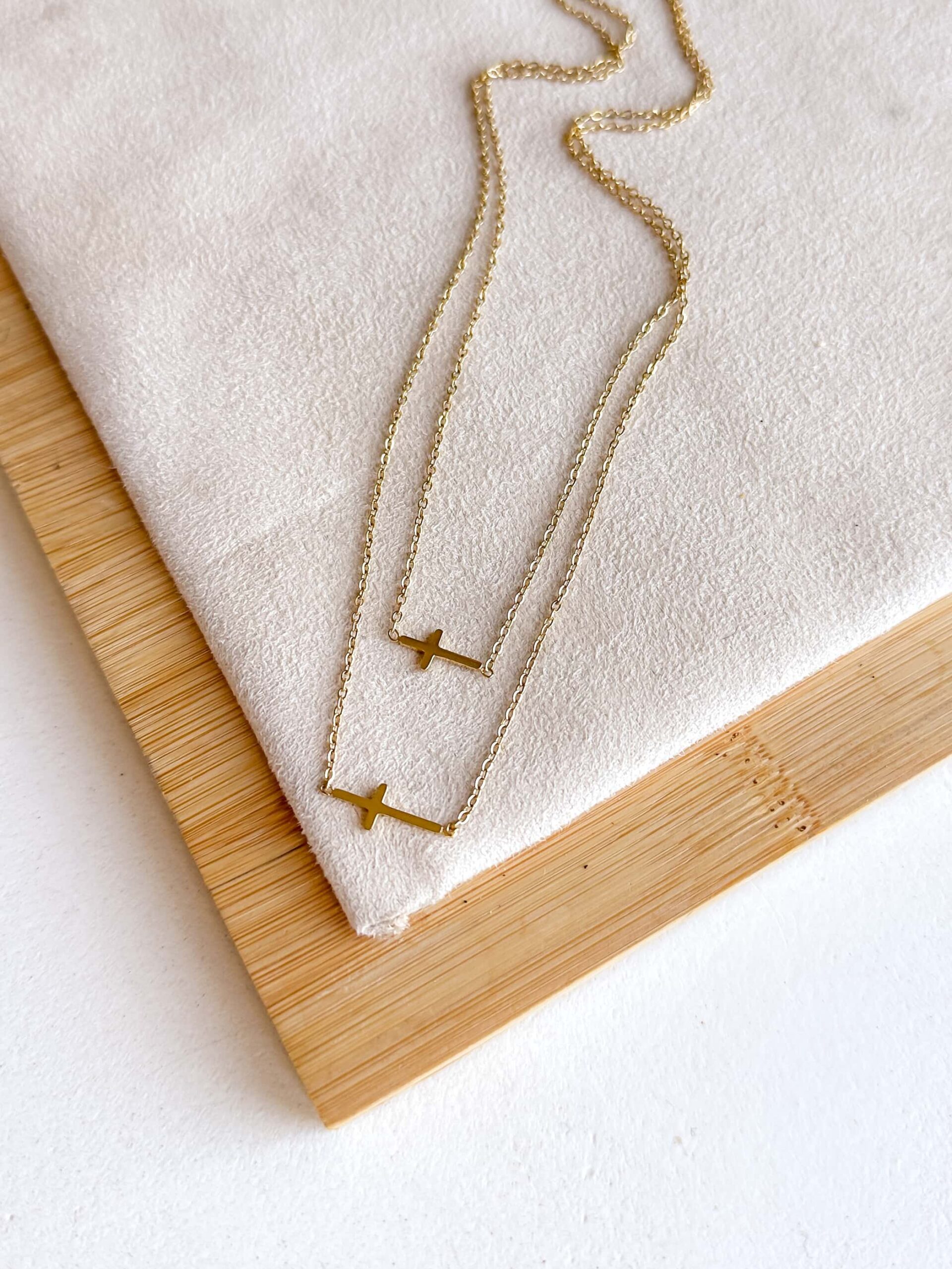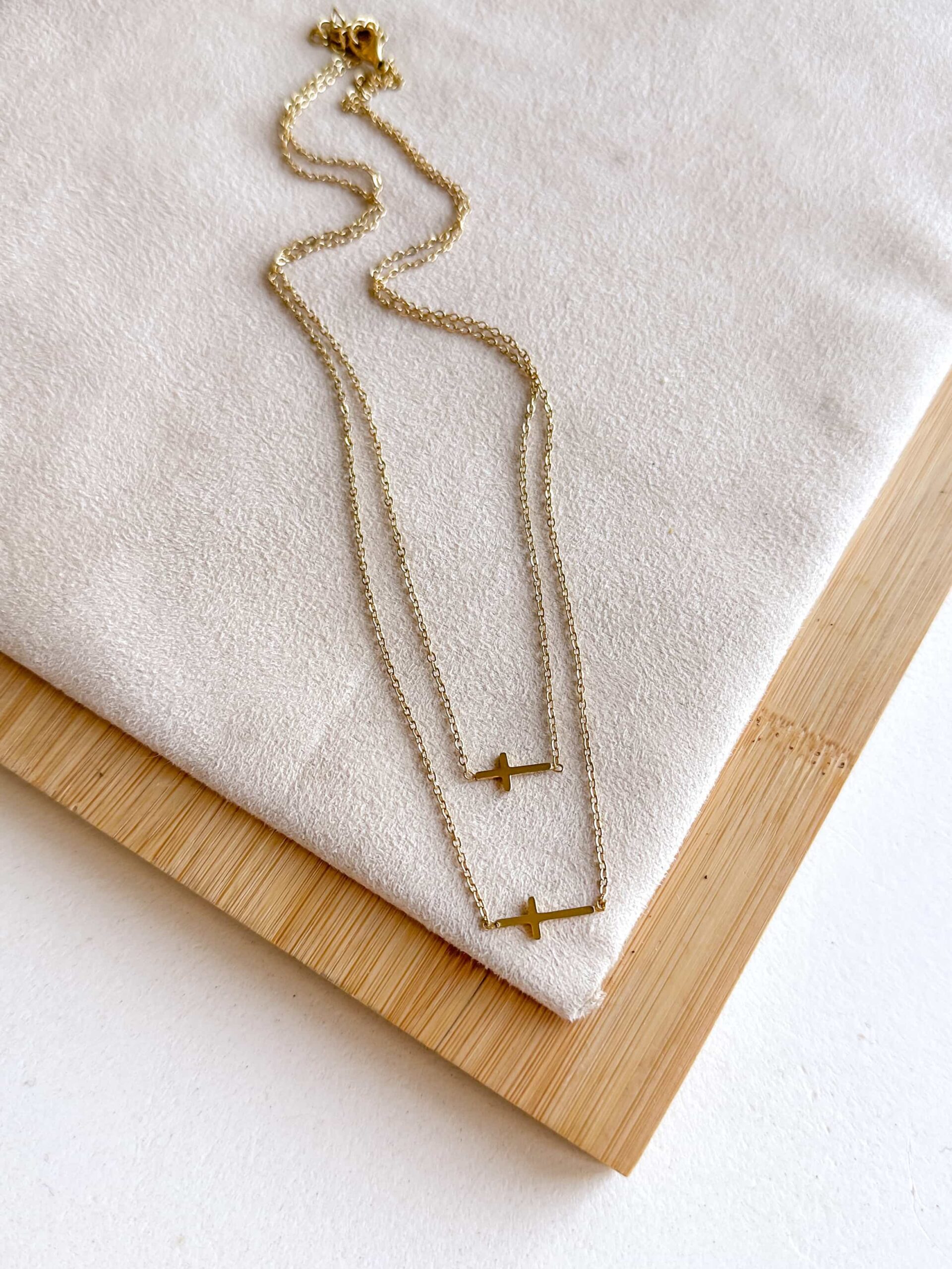 Model podwójnego naszyjnika celebrytki z krzyżykami w kolorze złotym