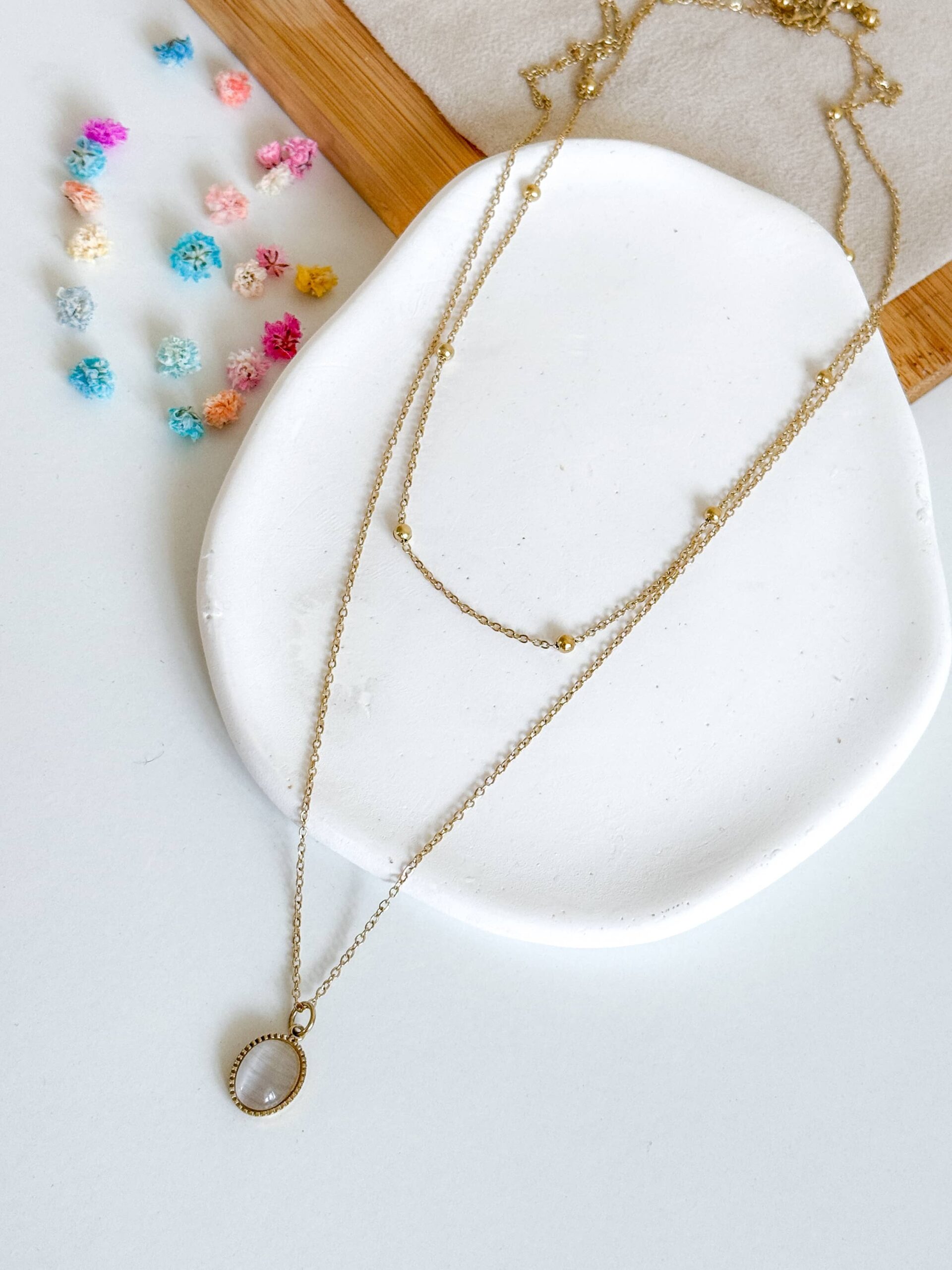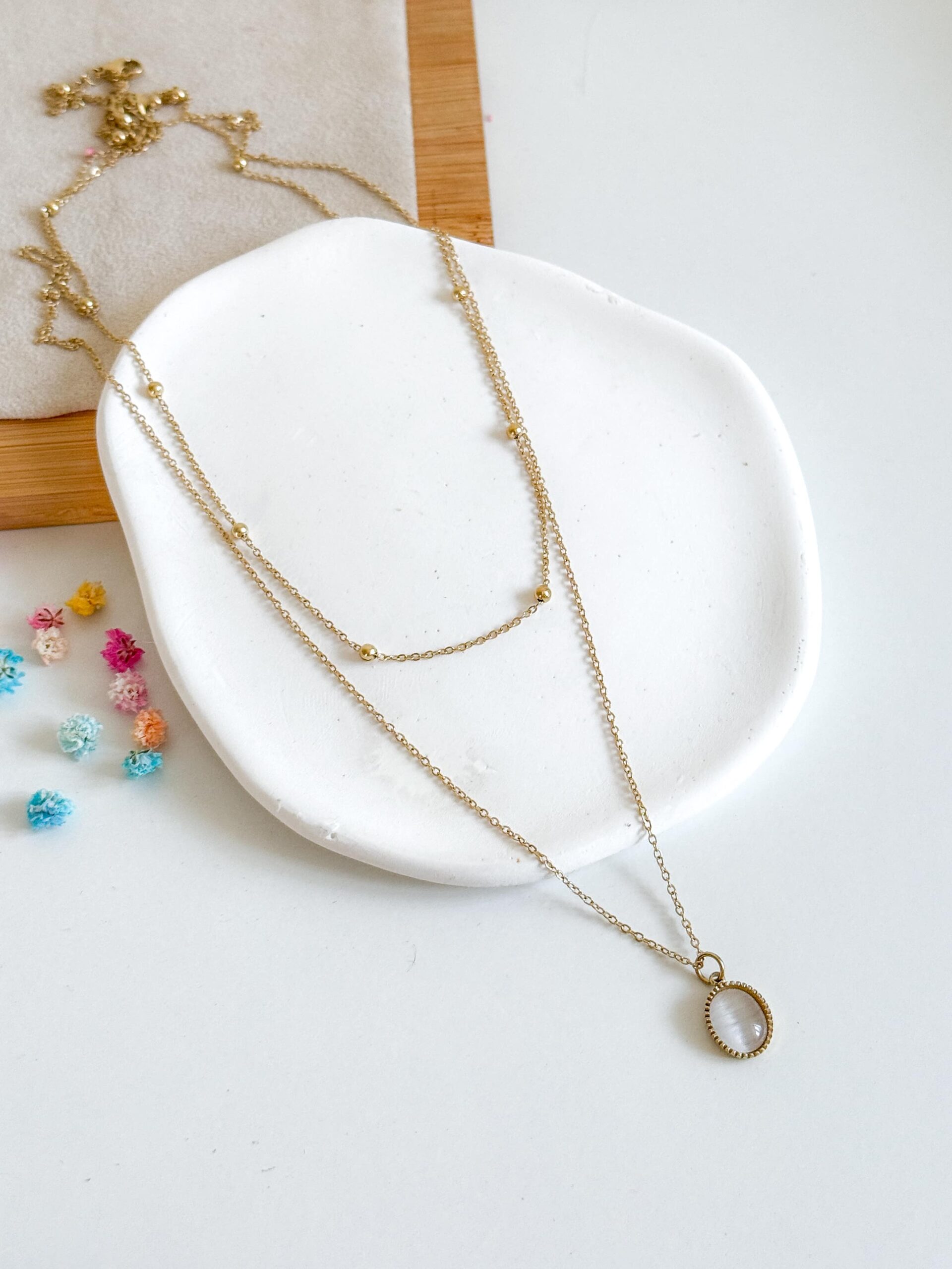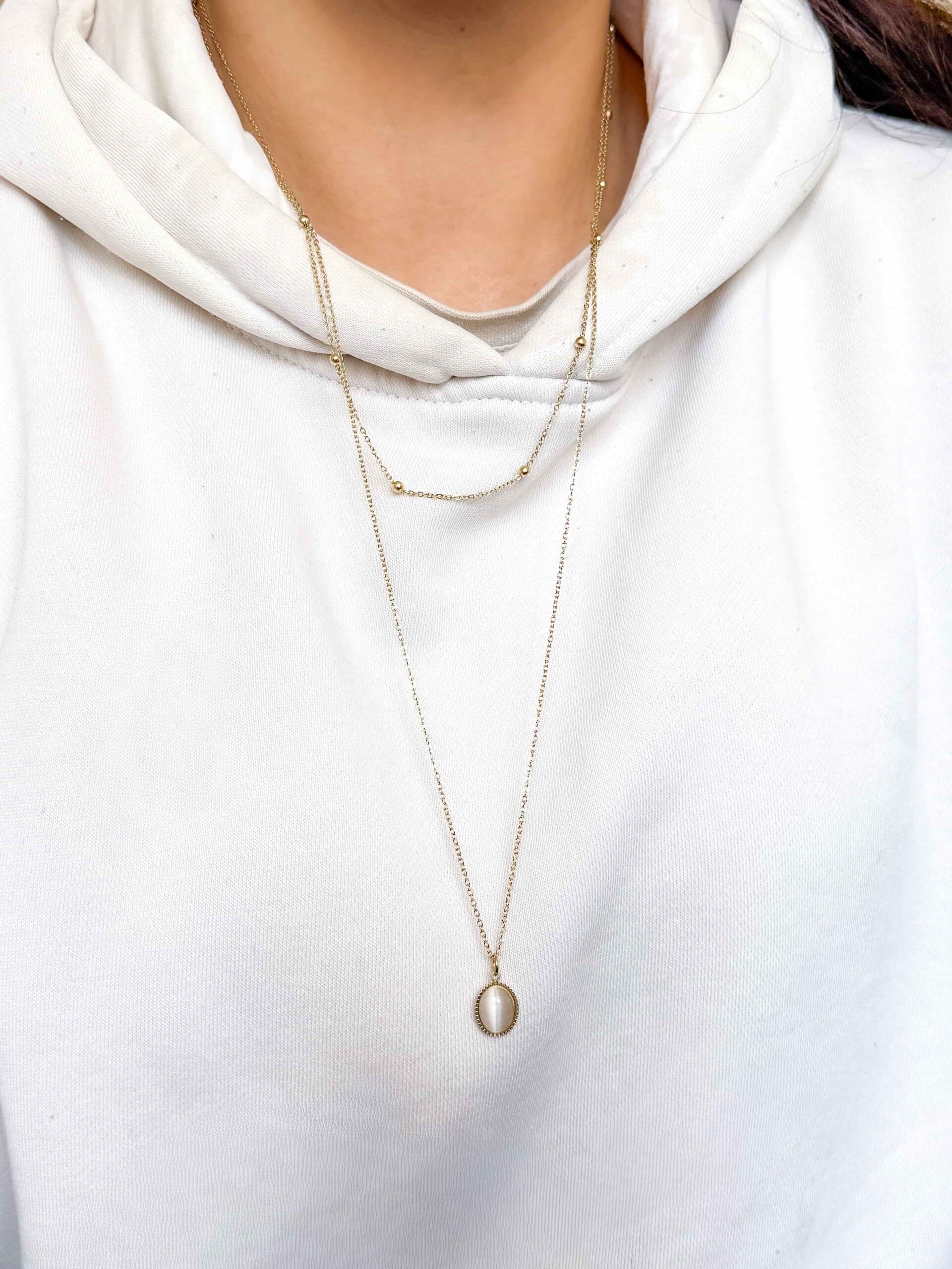 Naszyjnik podwójny, kaskadowy z kamieniem kocim okiem.